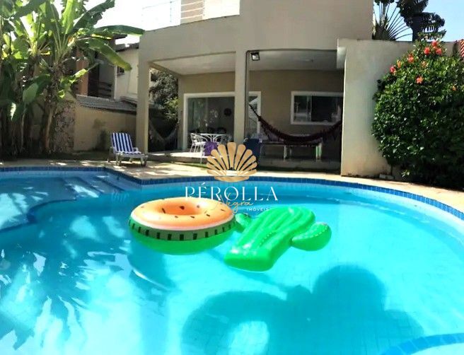 EXCELENTE SOBRADO EM CONDOMÍNIO FECHADO4 suítes. Todas com Ar Condicionado Split e ventiladores de teto.Varandas grandesSalas de estar/TV e jantarTotalmente mobiliada6 banheirosLavabo socialCozinha completaÁrea de serviços internaEspaço gourmet com churrasqueira, varanda coberta, banheiro etc.Ótima piscinaJardinsGaragem coberta para 2 carros e mais 2 descobertosTerreno com 360 m2Área construída 280 m2